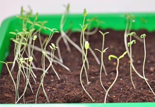 Keimlinge, die nicht genügend Licht bekommen, wachsen schnell in die Höhe und werden instabil. Dieses sogenannte „Vergeilen“ oder „Spargeln“ schwächt die Pflanze dauerhaft (siehe Bild unterhalb links).