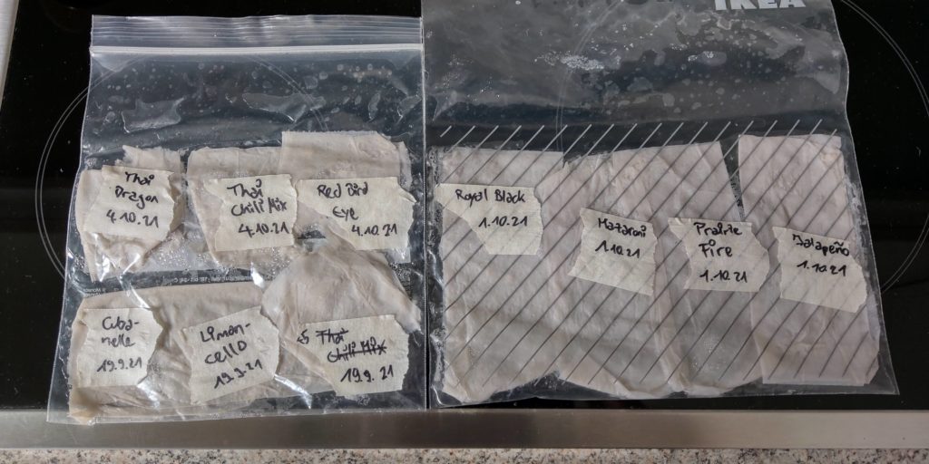 Ein wichtiger, oft unterschätzter Punkt: Beschrifte die Töpfe unbedingt – entweder vor oder direkt nach der Aussaat. Chili-Samen sehen sich sehr ähnlich, und ohne Beschriftung lässt sich die Sorte oft erst erkennen, wenn die Pflanze ausgewachsen ist.
